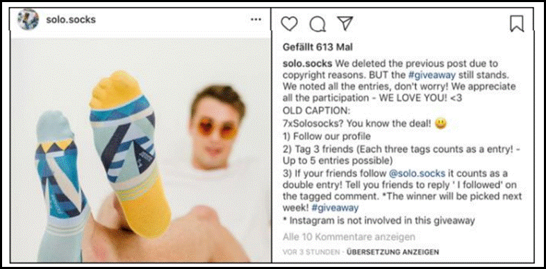 The above figure depicts a Danish company Solo Socks leads to a raffle off of its socks on the social media platform Instagram (Nufer, 2021). The marketing depicts about participation of friends by tagging at least three friends and taking part in the draw which leads to chances of winning it by double and promotion is spread through smartphones (SOOMRO et al. 2021). Advancement in telecommunication and information technologies leads to creating an effective way of evaluating communication methods across the globe and leads to empowering customers to select and sort out products and services based on decision-making (Gupta and Singh, 2020). It is focused on promotion and advertising based on brand awareness and brand image through communication channels that can be effective in required outcomes.